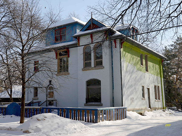 This two-storey residence on Assiniboine Avenue in Winnipeg was designed by local architect Charles H. Wheeler and built in 1890 for banker Frank Hall Mathewson (1852-1907).