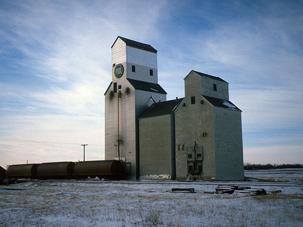 Manitoba Pool grain elevator at McAuley (February 1988)