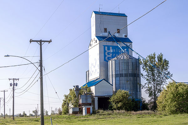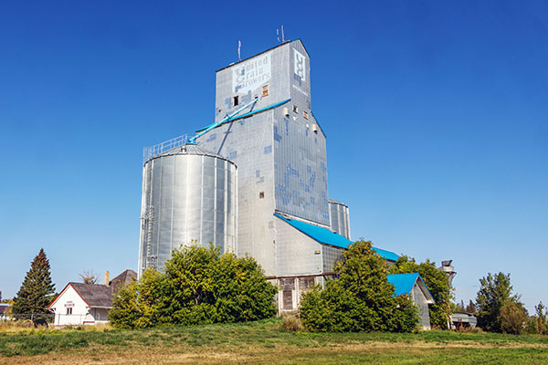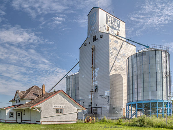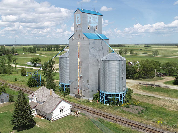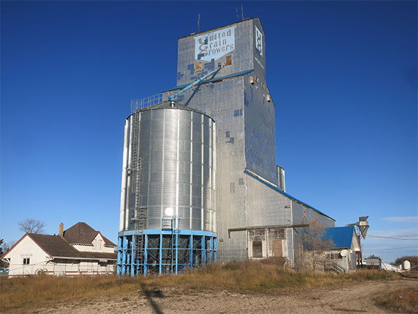 The former United Grain Growers elevator at McCreary, behind the train station now used as a community museum (July 2015)