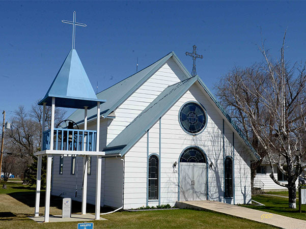 This Roman Catholic church at McCreary, in the Municipality of McCreary, was constructed in 1905 by carpenter Peter McIntyre using lumber from the surrounding forests.