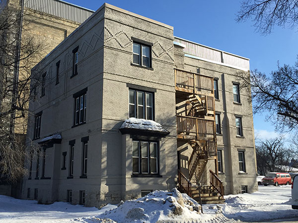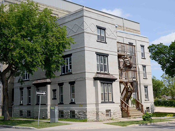 The Manitoba Medical College, established in 1883 as the first such school west of the Great Lakes, occupied this two-storey brick building designed by architect Victor Stewart or possibly by Neal Dow Barker. The building was constructed between 1884 and early 1885 on McDermot Avenue in Winnipeg. Later expanded to its present three-storey configuration, in 1906 the College moved to new facilities at 750 Bannatyne Avenue. In 1908, the building was renovated into a ten-suite apartment block called St. Regis Court.