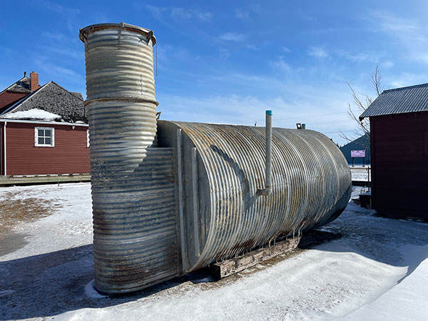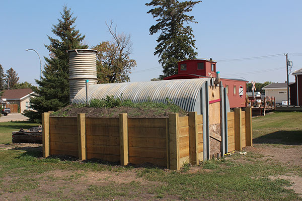 A caboose formerly operated by the Canadian Pacific Railway was acquired in 2019 from the Archibald Museum after its closure. Built in 1913, its van has a steel underframe, post-1962 CPR lettering scheme, and plywood siding.