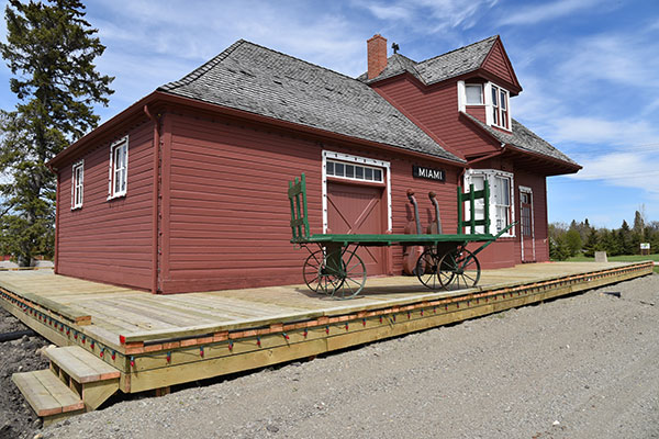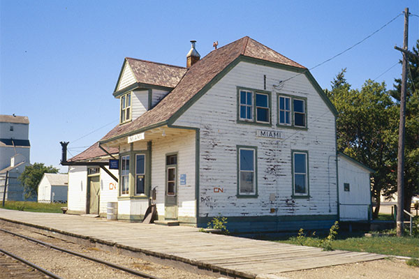 This station, built in 1889 at Miami in the Rural Municipality of Thompson, is a rare surviving example of a Northern Pacific and Manitoba Railway station which was used for many years by the Canadian Northern and the Canadian National Railways. It was designated a national historic site by the Historic Sites and Monuments Board of Canada (1976) and a municipally-designated heritage site (2008).