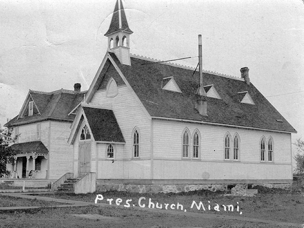 The United church at Miami, in the Rural Municipality of Thompson, was built in 1889 as Chalmers Presbyterian Church. In 1924, its congregation amalgamated with that of the local Methodist church to form Miami United Church, using the former Presbyterian building.