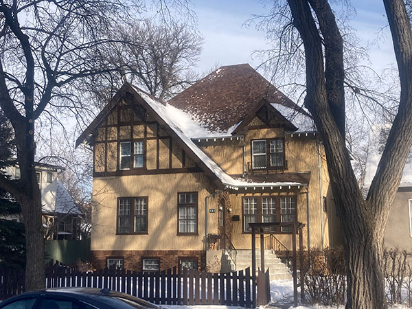 This two-storey brick and stucco house on Cathedral Avenue in Winnipeg, measuring 32 feet by 42 feet, was designed by local architect Max Zev Blankstein and built in 1930 by contractor Arthur John Bonnett for theatre owner Jacob “Jack” Miles at a cost of about $6,000. A one-storey frame and stucco garage, measuring 20 feet by 26 feet, was also designed by Blankstein and built by Bonnett at a cost of $250. Miles lived here until his death in 1951.