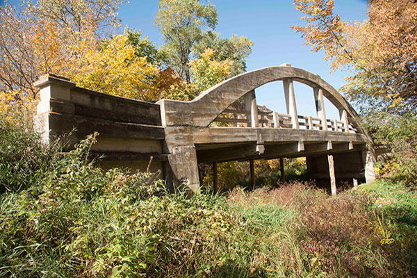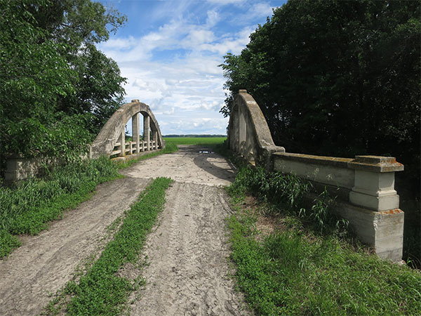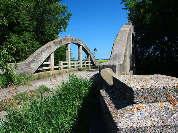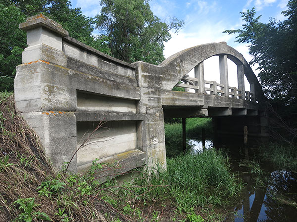 A concrete bowstring arch bridge over the Mill Creek in the Rural Municipality of Portage la Prairie was constructed by William Newman & Company in 1919 using Plan 374. The cost of construction was $6,681.