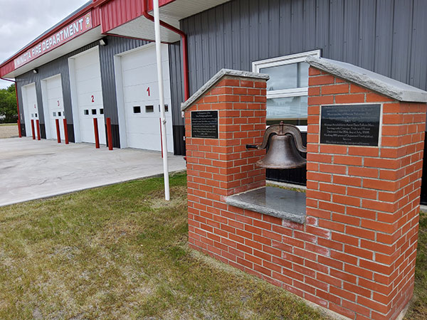This monument was unveiled on 20 July 2008, by the Fire Hall in the village of Miniota, to commemorate the men and women who have served in the Volunteer Fire Department of the Rural Municipality of Miniota since its founding in 1883, including people who served on the Village of Miniota Fire Brigade from 1908 to 1962.