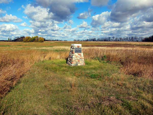 A fieldstone monument marks the former site of Miniota School in the Municipality of Prairie View. Established formally in April 1885, a school operated here until 1912, when it became part of the Miniota Consolidated School District No. 680 in Miniota.