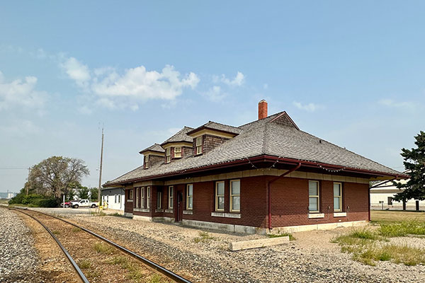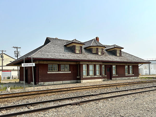 Canadian Pacific Railway station at Minnedosa (August 2023)
