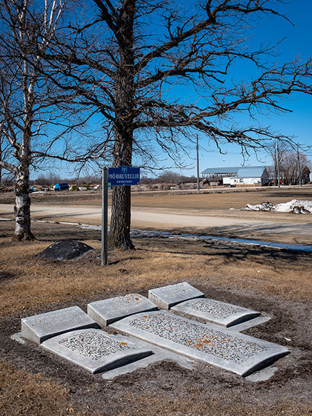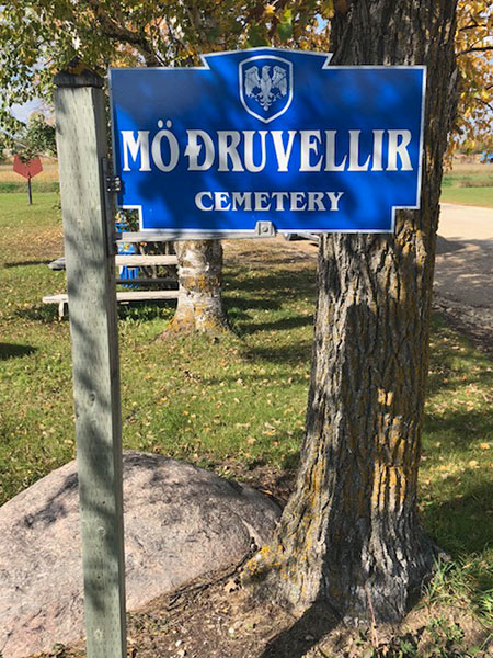 Underneath a tree in the Riverton Centennial Park lie three small marked graves, all that is left of Möðruvellir Cemetery. The cemetery is named after Möðruvellir, the original homestead of Sigtryggur Jónasson, the founder of New Iceland. Subsequently, Friðjón Friðriksson and his wife, Guðný Sigurðardóttir, took over the homestead. The graves are young three cousins from this family who passed away in the 1880s: Hermann Frederickson (1882-1885), Vilberg Friðsteinsson (1883-1885), and Vilberg Björn Sigurðsson (1868-1885). According to Guðný Sigurðardóttir, when she lost her son, Hermann in 1885, John Ramsay, the First Nations man who had helped the Icelandic settlers, had also lost his daughter. He asked if his daughter could be buried with Hermann since they were about the same age and had died about the same time, so the two children were buried together in the same grave. The Möðruvellir homestead eventually was taken over by the town of Riverton as it grew. The small cemetery is now located in the Riverton Centennial Park.