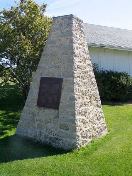 The stone cairn is on the grounds of the Morris and District Centennial Museum.