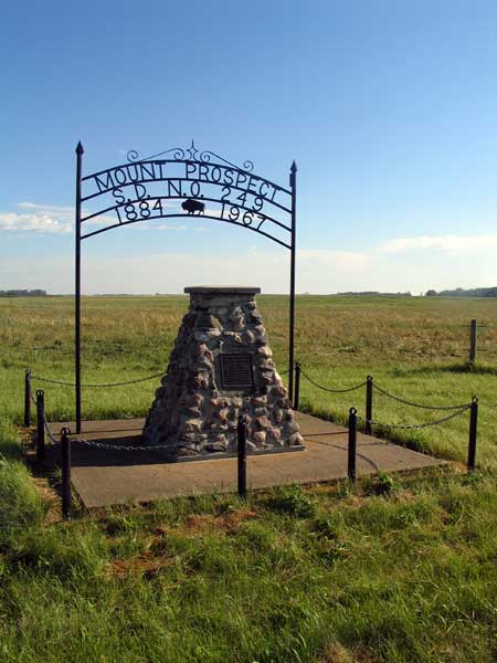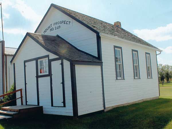 The Mount Prospect School District was established in April 1884, in what is now the Municipality of Cartwright-Roblin and a one-room frame school building was erected on the southwest quarter of 2-2-13 west of the Principal Meridian. It operated continously except for periods around 1913-1914 and 1943-1944 when low enrollment caused its closure. With consolidation in the 1960s, the school closed permanently in July 1967 and its remaining students went to Mather School No. 1345. The building, a municipally designated historic site (1992), was moved to the Cartwright Heritage Park in 1974.