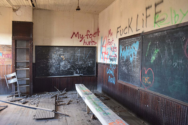 Vandalized interior of Mowbray School (July 2016)