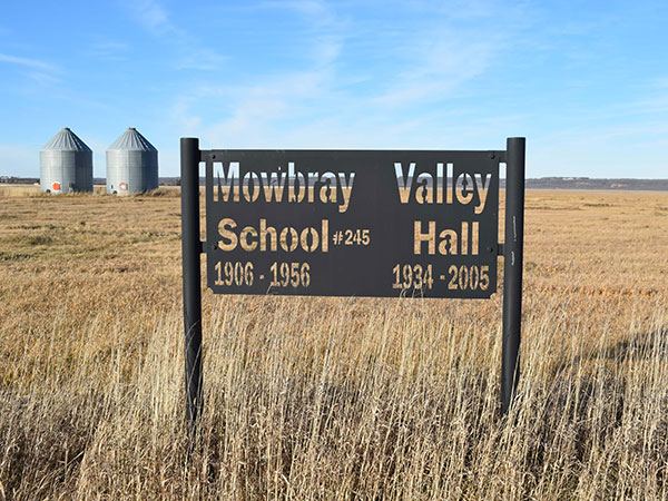 Established formally in 1887, the Mowbray School District operated as early as 1884, with a one-room schoolhouse situated at SW10-1-8W in the Municipality of Pembina. The present building was constructed at this site in 1906, retaining the name of Mowbray School (but being known locally as “Valley School”) while Boundary School was built in the nearby Mowbray village. By 1957, the students of this area were attending Boundary School. In 1967, both districts were consolidated with Manitou Consolidated School No. 314.