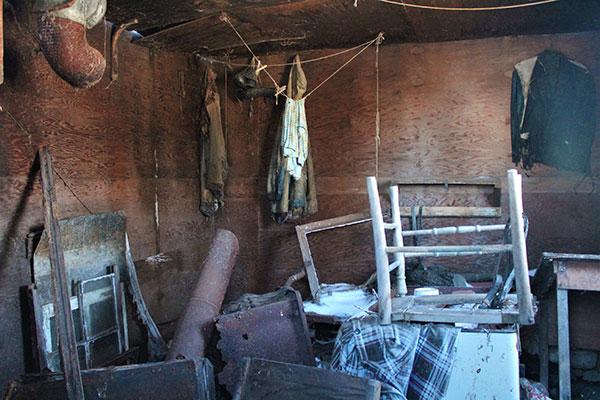 The veterans travelled west, arriving at Delta around the time that the road was constructed to the lakeshore, in the early 1920s. Taking up commercial fishing during winter, the brothers found occasional work on the farms around Oakland and Portage Creek in summer. Tom picked up odd jobs such as moving the outhouses of cottagers. A little matter of game regulations which prohibited commercial fishing in the summer did not stop him. Every Friday, Tom would peddle fish that he had caught to cottagers and residents, charging 25¢ for enough to feed a family of four. Meanwhile, sister Daisy had found employment as a housekeeper for Dr. Fred Cadham at his cottage on the east side of Delta Channel near the site of the Delta Waterfowl Station. Each brother had his own one-room shack that was pulled by horses out onto Lake Manitoba during the fishing season then brought back in the spring. Tom’s shack, nicknamed “Skylark,” was remembered as having a bed and woodstove, with a small table under a single window. Pots and dirty dishes were usually strewn about the place.