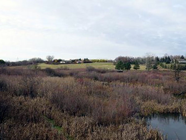 Former site of the Canadian National Railway Bridge at Neepawa looking northwest (October 2016)