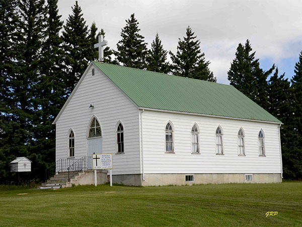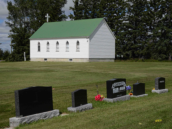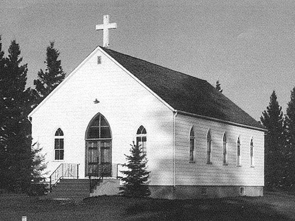 This Ukrainian Catholic church near Newdale in the Municipality of Harrison Park was formerly a Mennonite church located two miles north of Rivers, having been vacant for some time, and purchased in 1984. The first service in the new church was held on 31 March 1985. It replaced the former Newdale United Church (the former Newdale Methodist Church) that had been sold to the congregation in 1949 and used at a site near the railway station in town. Paintings inside the church were made by Edmonton artist Peter Lipinski.