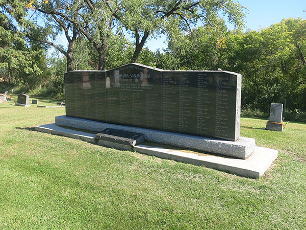 The list of 318 names on the monument given below is incomplete because the Belmont Hillside Cemetery burial maps were destroyed in a fire in 1966. The list was compiled by Manitoba Health, including those whose deaths were recorded as having taken place at the Sanatorium. Those listed below were buried in Belmont Cemetery although others who died at the Sanatorium were buried in nearby cemeteries at Ninette or Dunrea, or at other places.