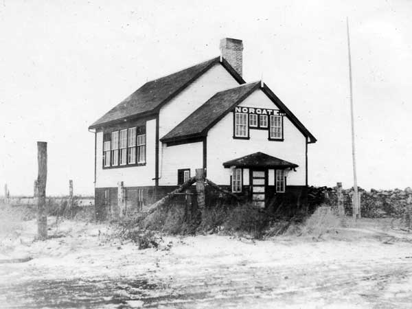 The Norgate School District was organized formally in February 1894 and a school building operated in which is now the Municipality of McCreary. Initially located about one-half mile east of Norgate, on the Burrows Trail, it was known as Montcalm School and later as Camden School. In 1920, a new school building in Norgate opened and was named Norgate School. The school closed in 1966 and the district was dissolved the following year, with remaining students going to McCreary Consolidated School No. 1348. The former schoolhouse was moved to Kelwood where it was used as a school storeroom. It was later sold to a local farmer for use as a granary.