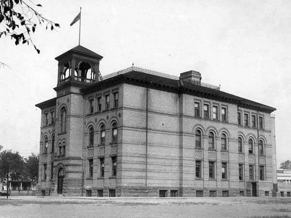 Designed by local architect W. T. Dalton and built in 1882, a two-classroom frame building in the Point Douglas area of Winnipeg was known as Euclid School or North Central School. Demand for space grew quickly and it was soon expanded with six more classrooms into a two-storey, brick veneer structure. On 14 January 1892, a fire broke out in the school’s basement while classes were in session and 550 students were forced to evacuate into subzero temperatures under the supervision of Princpal J. H. Mulvey and Superintendent D. McIntyre. The building was completely destroyed.