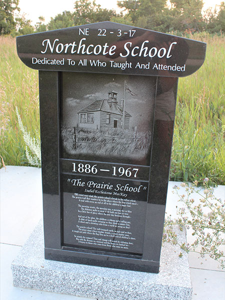 The Northcote School District was established formally in April 1885. The present school building dates from 1906, when a one-room structure was built of concrete blocks, a building material unique to the early twentieth century. It was situated on the northeast corner of 22-3-17 west of the Principal Meridian, in what is now the Rural Municipality of Killarney-Turtle Mountain. The district was dissolved in January 1967 and the remaining students went to Killarney School No. 252. As of 2019, the building remained on its original site and, at some time in its past, had been converted into a granary.