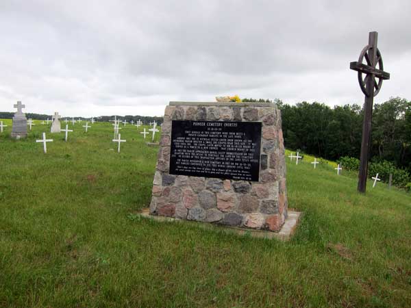 In 1913, the Parish approached homesteader Daniel Lilley with the intent to purchase the land on the cemetery site. No formal record of the transaction has been found. In 1917, the Parish developed a new cemetery at NW16-18-20W but local families continued to use this burial ground until 1943. A monument on the site, unveiled on 24 August 2002, contains the names of those buried here in the early 20th century.