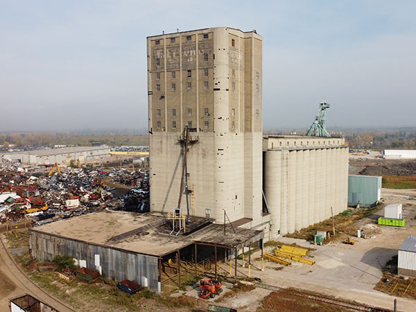 Aerial view of the former Parrish & Heimbecker grain elevator (October 2021)