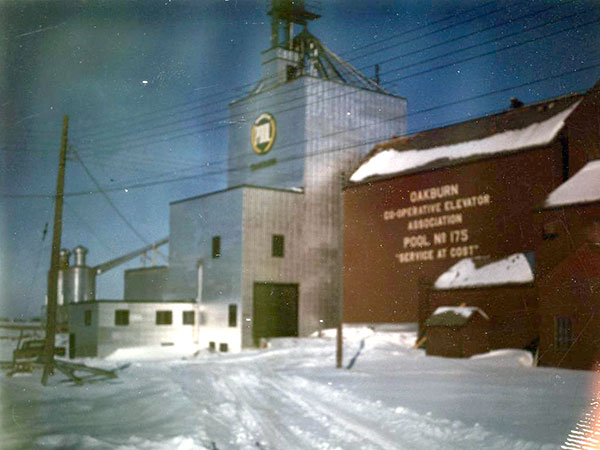 A 51,000-bushel wooden grain elevator at Oakburn, on the CNR Rossburn Subdivision in the Rural Municipality of Yellowhead, was built in 1965 by Manitoba Pool Elevators, replacing an earlier elevator that stood on the opposite end of the annex. The crib annex was constructed in 1950 and enlarged by 36,000 bushels in 1967. The facility was closed in April 1996, when the adjacent railway line was abandoned, and sold by tender.