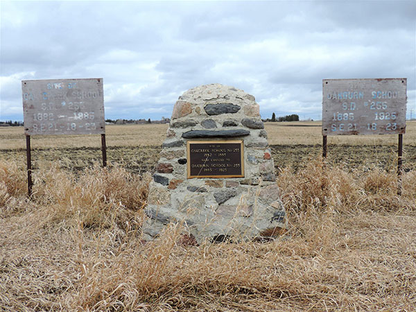 A monument marks the site of the Oak Creek School, which operated here between 1882 and 1885. Its name was changed to Oakburn and, in 1926, it continued as Oakburn School in the nearby village of Oakburn in what is now the Rural Municipality of Yellowhead.