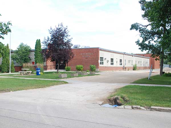 Constructed in 1954 at a cost of $150,000 by the Fort Garry School District, later the Fort Garry Municipal School District, the cornerstone with an enclosed time capsule (opened in 2004 for the school’s 50th anniversary) of the ten-classroom school was laid by Norman Neuman. The exterior was finished with brick and stucco school, and was officially opened on 25 June 1954 by Clifford Knox Rogers before a crowd of 600. Other notables included R. Darwin Chase, William Scott Neal, and Leslie Raymond “Ray” Fennell. Hosting grades 1 to 6, the building was soon expanded in 1957 with six additional classrooms, at the cost of $80,000.