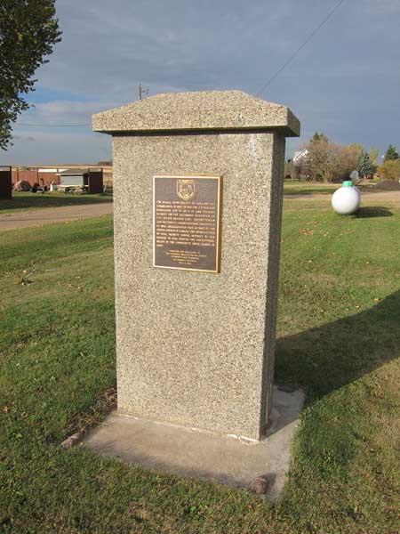 A monument at Nesbitt, in the Municipality of Oakland-Wawanesa, was erected on 5 July 1992 to commemorate the village’s centenary. In 1891, the Canadian Pacific Railway purchased the northwest quarter of 28-7-18 west of the Principal Meridian and established Nesbitt on the Glenboro extension of its Souris branch line. It is alleged the name was chosen by Senator John Nesbitt Kirchhoffer, who was supposed to have agreed to endow the new village with a bell, but later did not fulfill his end of the bargain.