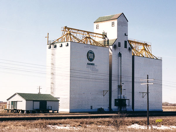 A wooden grain elevator and crib annex in Oakner, on the CNR Rivers Subdivision in the Municipality of Hamiota, was constructed between 1978 and 1979. They replaced an earlier elevator once owned by the Scottish Co-operative Wholesale Society but purchased in 1973 by Manitoba Pool Elevators. A second annex was added on the west side in 1985. The buildings were demolished in 2010 or 2011.