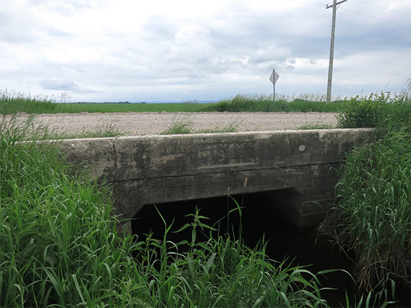 A concrete culvert bridge along a former section of Provincial Trunk Highway No. 5, west of Ste. Rose du Lac in the Municipality of Ste. Rose, was built in 1921 by William Newman, using Plan No. 870, at a cost of $1,228.