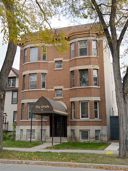 This three-storey brick residential apartment block on Furby Street in Winnipeg was designed and constructed in 1912 by Arthur Simmons for Richard Henry Lear at a cost of $20,000. The 80 by 33 foot building contained seven apartments in its original configuration but now contains eight.