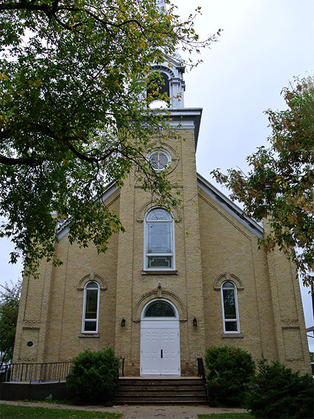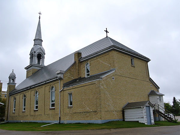 This brick church on First Street West in The Pas was constructed in 1922, replacing a log church building constructed in 1897. A bell beside the church was first mounted in the first cathedral and was moved to the present cathedral in 1922. It was removed from the belfry in 1982 and placed in front of the cathedral three years later.