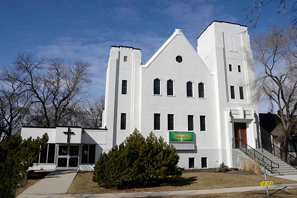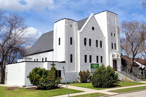 This building on the west side of Minto Street in Winnipeg, designed by local architect Anton Edvin Breivik and built in 1939 by contractor Haakon Magnus Leonard Overgaard, was home for the first Norwegian Lutheran church in the city. In 2005, its congregation merged with that of the First English Lutheran Church. At the time of a 2021 site visit, the building hosted the Faith Bible Church.