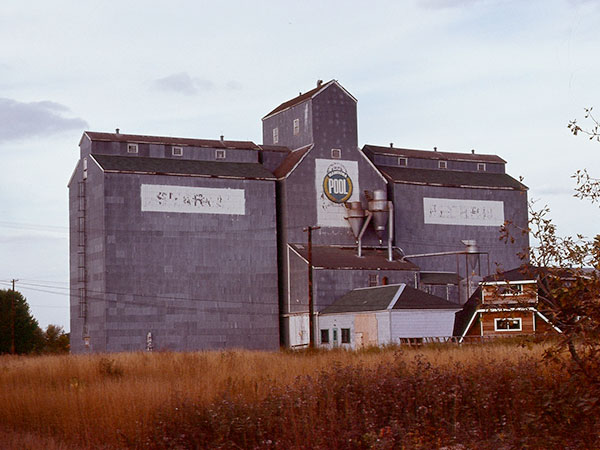 Searle grain elevator at Pacific Junction after its 1972 sale to Manitoba Pool (no date)