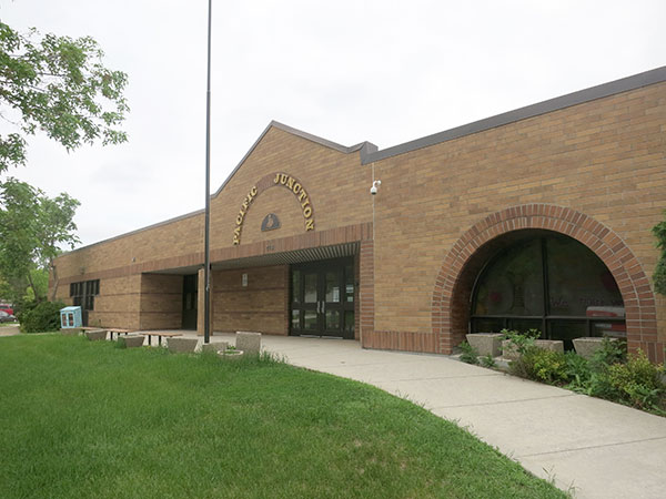 The 32,000-square-foot Pacific Junction School was built by the Taubensee Construction Company on designs of the Winnipeg architectural firm MCM Architects at a cost of about $2.5 million. It opened to students in September 1987 and was officially opened at a ribbon-cutting event on 30 November 1987 attended by Assiniboine South School Division Board Chairman Ron Statham, Assistant Deputy Minister (Administration and Finance) Tim Sale on behalf of Education Minister Roland Penner, Community Services Minister Maureen Hemphill, Charleswood MLA James Arthur “Jim” Ernst, Vice-President of the Charleswood Historical Society Len Van Roon, Principal Paul Gluck, John Guenther Taubensee of Taubensee Construction, and Glen Cockburn of MCM Architects. The K-6 school features an independent daycare facility and a 750-square-foot community room, cost-shared between the Assiniboine South (now Pembina Trails School Division) and the City’s Parks and Recreation Division.