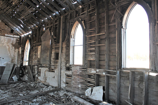Until a church building was constructed in this vicinity, services were held in the Palmerston School at the instigation of Rev. James Robertson. In 1909, a church was constructed on an acre of land (in what is now the Municipality of Prairie View, near the Palmerston Pioneers Monument) donated by a Mr. Fennel, at a cost of over $11,000. It opened on 30 October 1909. The church eventually became part of the Miniota-Arrow River charge in the United Church of Canada. It closed in late 1940. At the time of a 2021 site visit, the building stood precariously on a crumbling stone foundation.