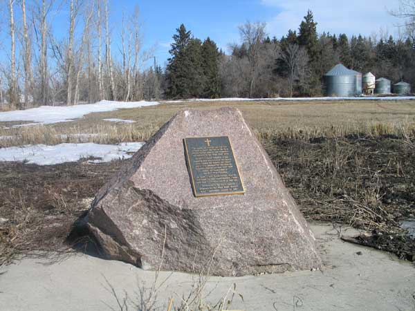 A monument on Parish Lot #26 was dedicated by the High Bluff History Book Committee on 25 August 2001. It marks the site of the first Presbyterian Church and cemetery established in the High Bluff area. In 1872, a large building of log building was constructed, the lower storey being the manse and the upper storey finished for the church. Regular services were held under the leadership of Reverend William Fletcher. In 1880 a new Presbyterian Church was built for the congregation one mile (1.6 kilometres) east and 1½ miles (2.4 kilometres) north of this site. Four graves still remain in the cemetery here.