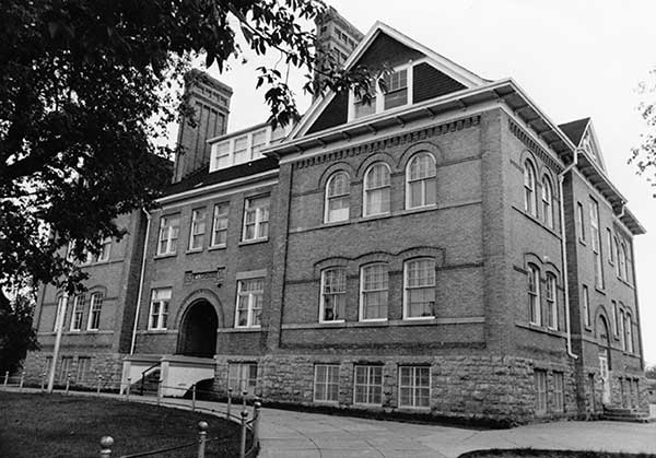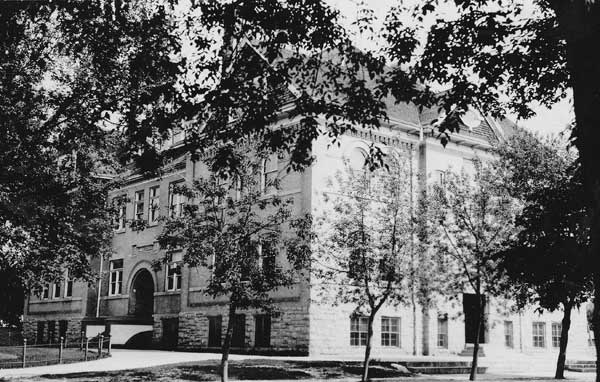 This two-storey brick and stone school, on the south side of Lorne Avenue between 14th and 15th streets in Brandon, was designed by local architect William Alexander Elliott. Built between 1904 and 1905 by the Brandon Construction Company at a cost of about $38,000, it was opened to the public at a ceremony on Arbor Day, 4 May 1905, replacing the former West Ward School at the site. The building’s interior was decorated with walls of mahogany and western pine with floors of British Columbia fir. It had ten classrooms, a principal’s office, a reception room, a teachers’ room, and an assembly hall on the second floor.
