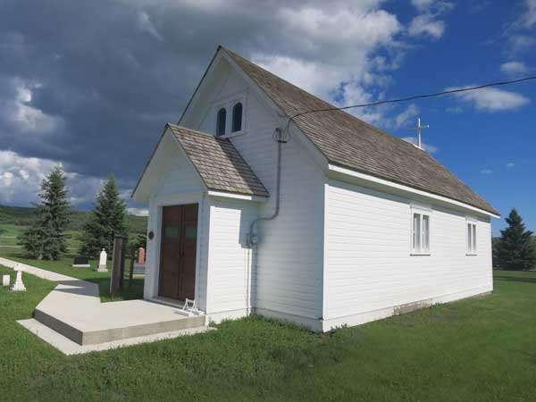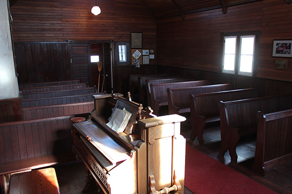 In the early 1880s, several families settled near the place where the Boundary Commission of 1873 had crossed the Pembina River. In 1885, these pioneers established the Parish of St. Luke’s Pembina Crossing. Originally, Church of England (Anglican) services were held directly across the road from this site in the Valley Stopping House. After the Pembina Valley School was built in 1885, services were held there until 1886. The picturesque poplar log building, originally a general store built in May 1880, was in use until 1920 when it was replaced by a new building which opened on 26 September 1920. The following year, by an unfortunate accident, it burned down although most of the furniture and fittings were saved.