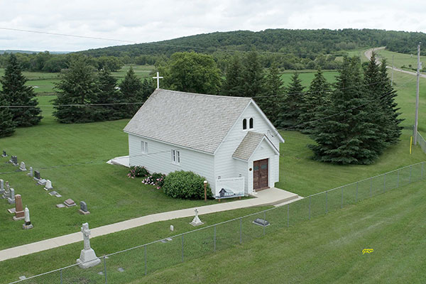 Aerial view of St. Luke’s Pembina Crossing Anglican Church (July 2022)