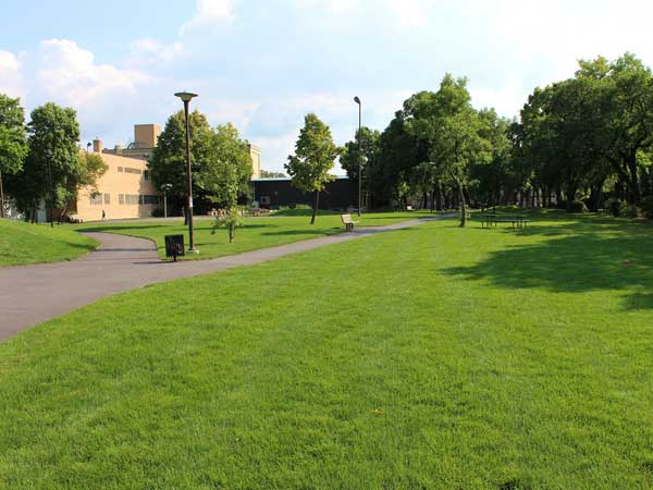This four-acre site, in Winnipeg on Notre Dame Avenue between Victor and McGee Streets, was one of the original eight parcels of land purchased in 1893-1894 by the city’s first Parks Board to establish a park system. The southeast corner of Notre Dame Park became home to the city’s plant nursery and greenhouses under supervision of the first Park Superintendent and City Gardener David D. England. Tens of thousands of elm trees were grown here before being transplanted to the city’s parks and boulevards.