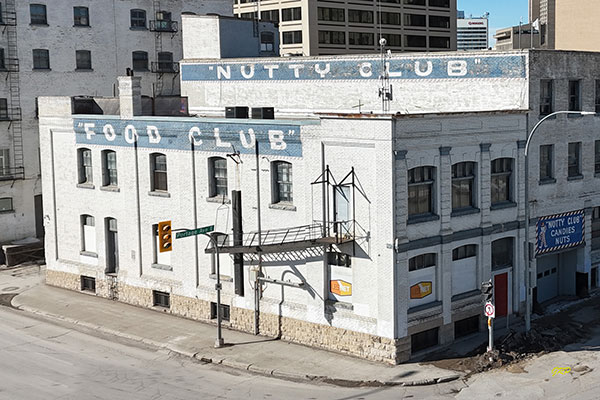 This two-storey brick and stone building at the southwest corner of Portage Avenue East and Westbrook Street in Winnipeg, measuring 30 feet by 87 feet, was designed by local architect Herbert Edward Matthews and built in 1905 for the wholesale biscuit and confectionery distributors D. S. Perrin Company of London, Ontario at a cost of about $30,000.
