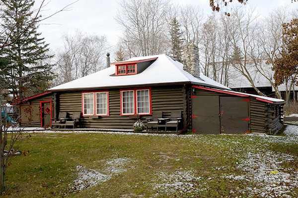 This one-storey log cabin on Pinegrove Avenue in Dunnottar was built in 1933 as a summer home for Winnipeggers James William “Jimmie” Vaughan (1895-1990), his wife Mary Spencer Vaughan (1903-1996), and their children. It is a Dunnottar historic site.