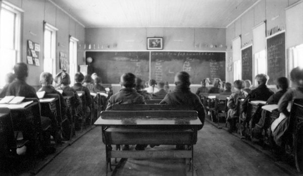 Interior of Pine Ridge School (1921) by Elsie Finnie George