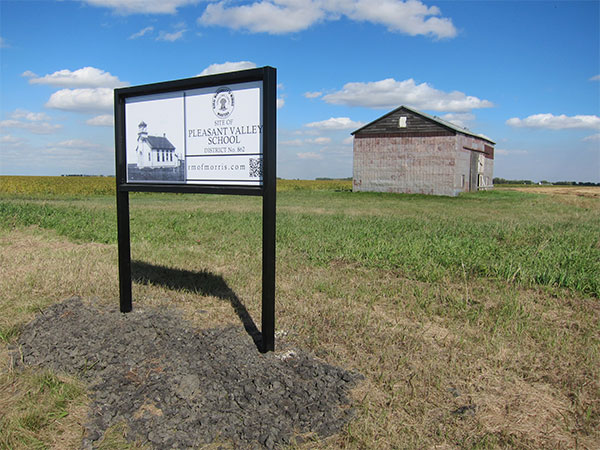 The Pleasant Valley School District was formally established in August 1895 and a school building located at SE34-5-1W in the Rural Municipality of Morris. Around 1909, a new school site was founded at SW3-6-1W. After the school closed, the building was sold and moved to Sperling where it was used as a Masonic Lodge. The school district was dissolved in 1967 and its catchment area was added to Rosenort Consolidated School District No. 2455. In September 2015, a sign commemorating the school was erected at its later site.
