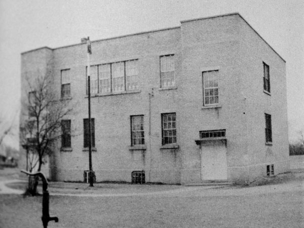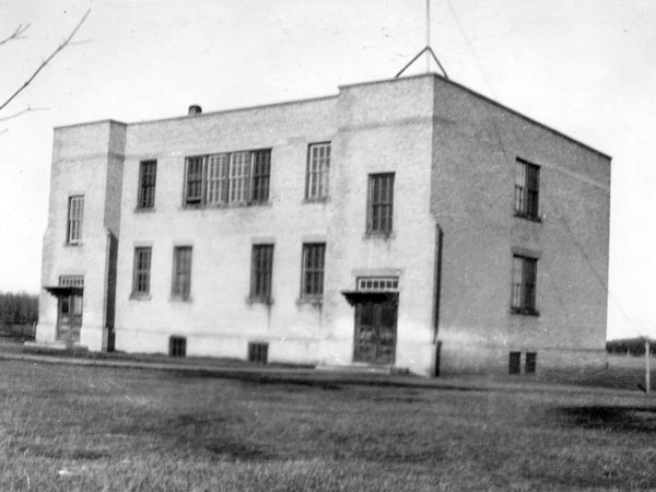 Known originally as the Jordan School District when it was organized in March 1880, the first schoolhouse was a log building erected near the northwest corner of town at NE20-16-12 West of the Principal Meridian in what is now the Municipality of WestLake-Gladstone, at McKenzie Avenue and Queen's Road, around 1881. That building burned down in the winter of 1889, after which temporary quarters were had at Cartwright House, a vacant log house towards the south end of Burrows Avenue.
