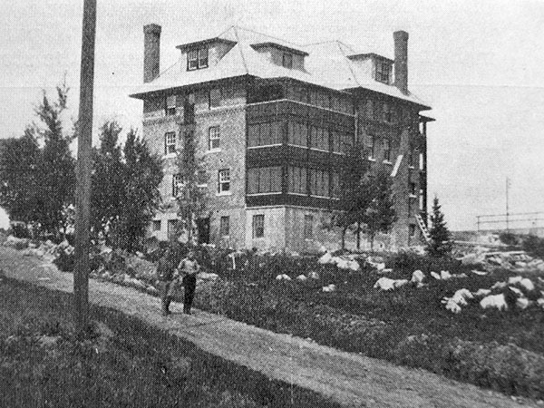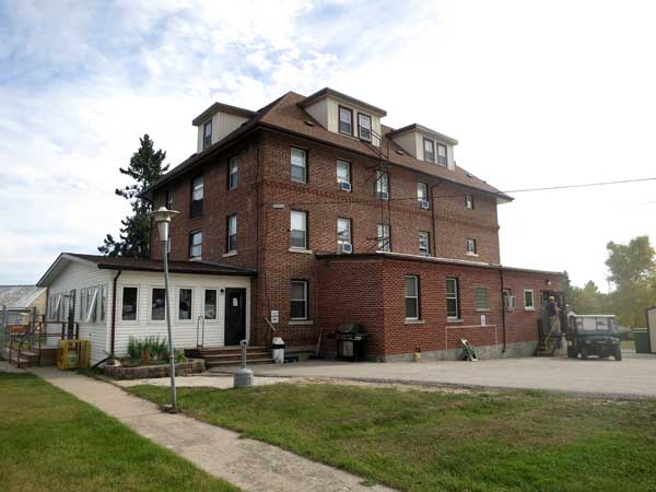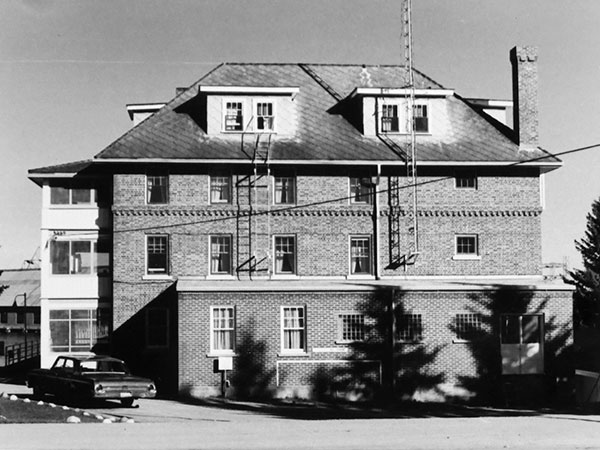 A four-storey brick and concrete building near the Pointe du Bois Hydroelectric Generating Station was built to accommodate workers employed by the Winnipeg Hydro-Electric System (forerunner of Winnipeg Hydro, now merged with Manitoba Hydro). Designed by Frederick Francis LeMaistre (1877-1955) of the company’s engineering staff, construction by the James McDiarmid Company began on 31 March 1926 under the supervision of J. M. Morton. Measuring 38 feet wide and 54 feet long, the building had a verandah and balconies on the front facing the Winnipeg River. In the basement was a cook’s residence, boiler room, and storeroom. On the ground floor was a sitting room with an open fireplace, and a reading and writing room and dining room separated by folding doors that enabled them to be connected when a larger space was needed. There was also a kitchen, pantry and pastry room, and wash room. The second and third floors had identical layouts, each with seven single bedrooms, one double bedroom, and lavatories with showers rather than bathtubs. Space was available in the attic for four or five additional bedrooms, if needed. An official opening ceremony occurred on 15 August 1926.